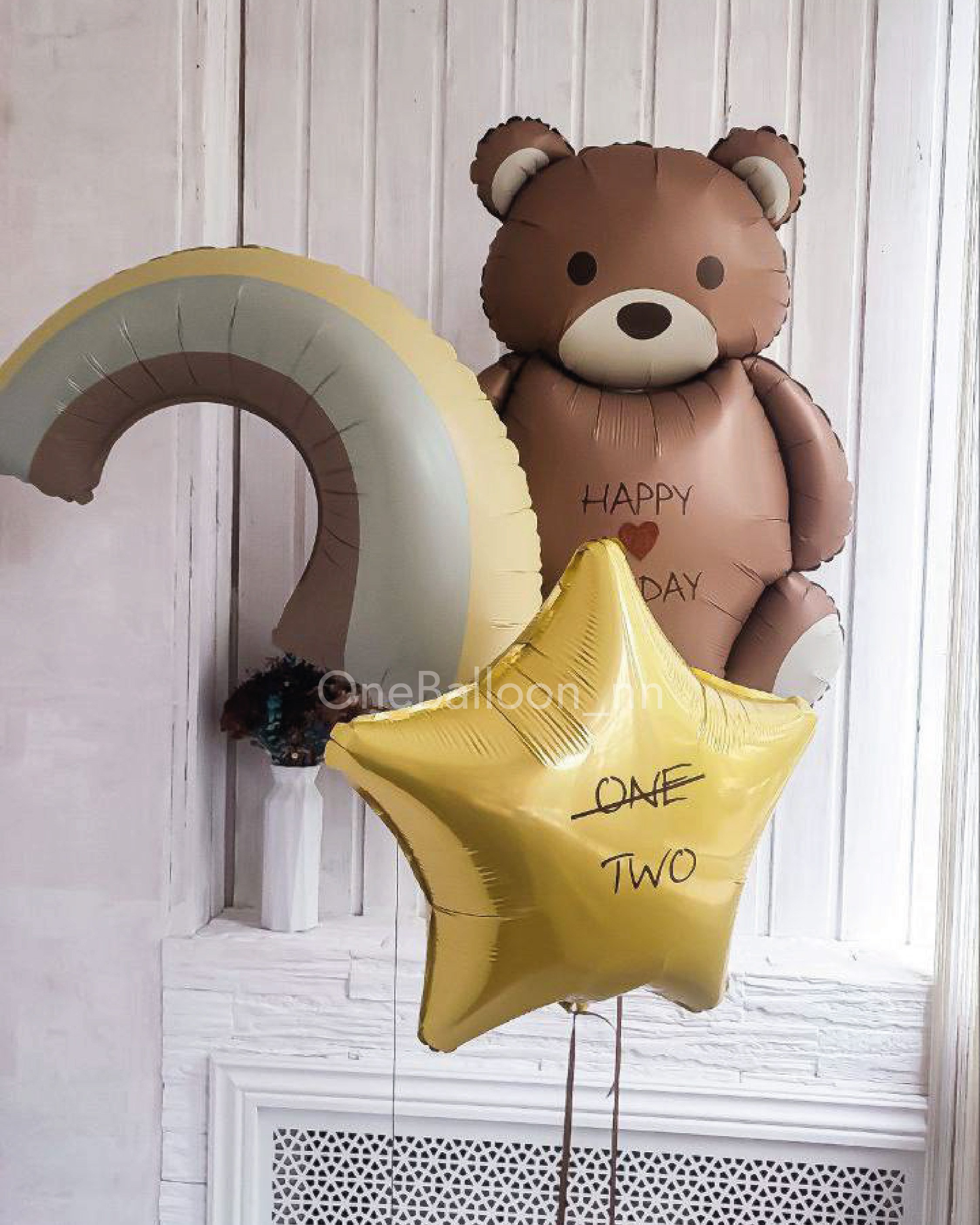 фольг. радуга, мишка, сердце (45 см) с надписью
